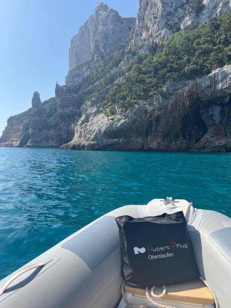Ein schöner Ferienort an der Ostküste Sardiniens. Dank des kristallklaren Meers, der atemberaubenden Strände, der Meeresgrotten und der umliegenden Berge, eignet sich der Ort perfekt für einen entspannten Strandurlaub. Auch die fantastischen Badebuchten des Nationalparks gehören dazu. Diese sind überwiegend mit dem Boot erreichbar. Selbstverständlich ist unsere vollgepackte Hubert Pflug Tasche im Einsatz!